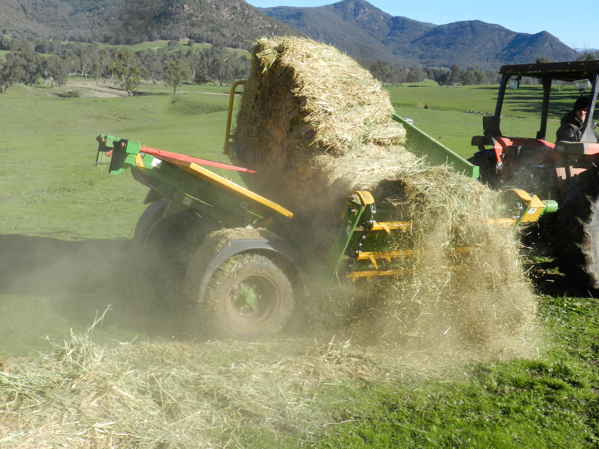 Its contoured feed chamber made from heavy gauge steel, ensures a smooth rotation of the round bale via the 6000 lb conveyor chain which operates in either a forward or reverse motion. These features combine to ensure uninhibited dispersion of feed over either side of the machine, regardless of bale’s spiral direction.